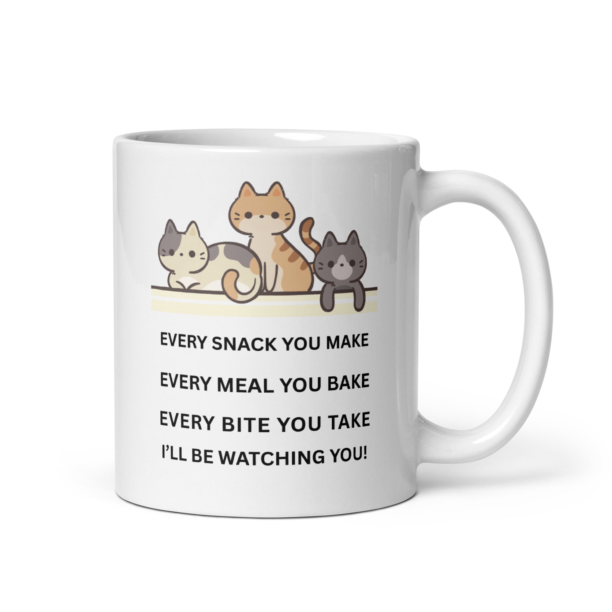Whether you're drinking your morning coffee, evening tea, or something in between—this mug's for you! A fun cat loving mug that is so true of cats. It's sturdy and glossy with a vivid print that'll withstand the microwave and dishwasher.